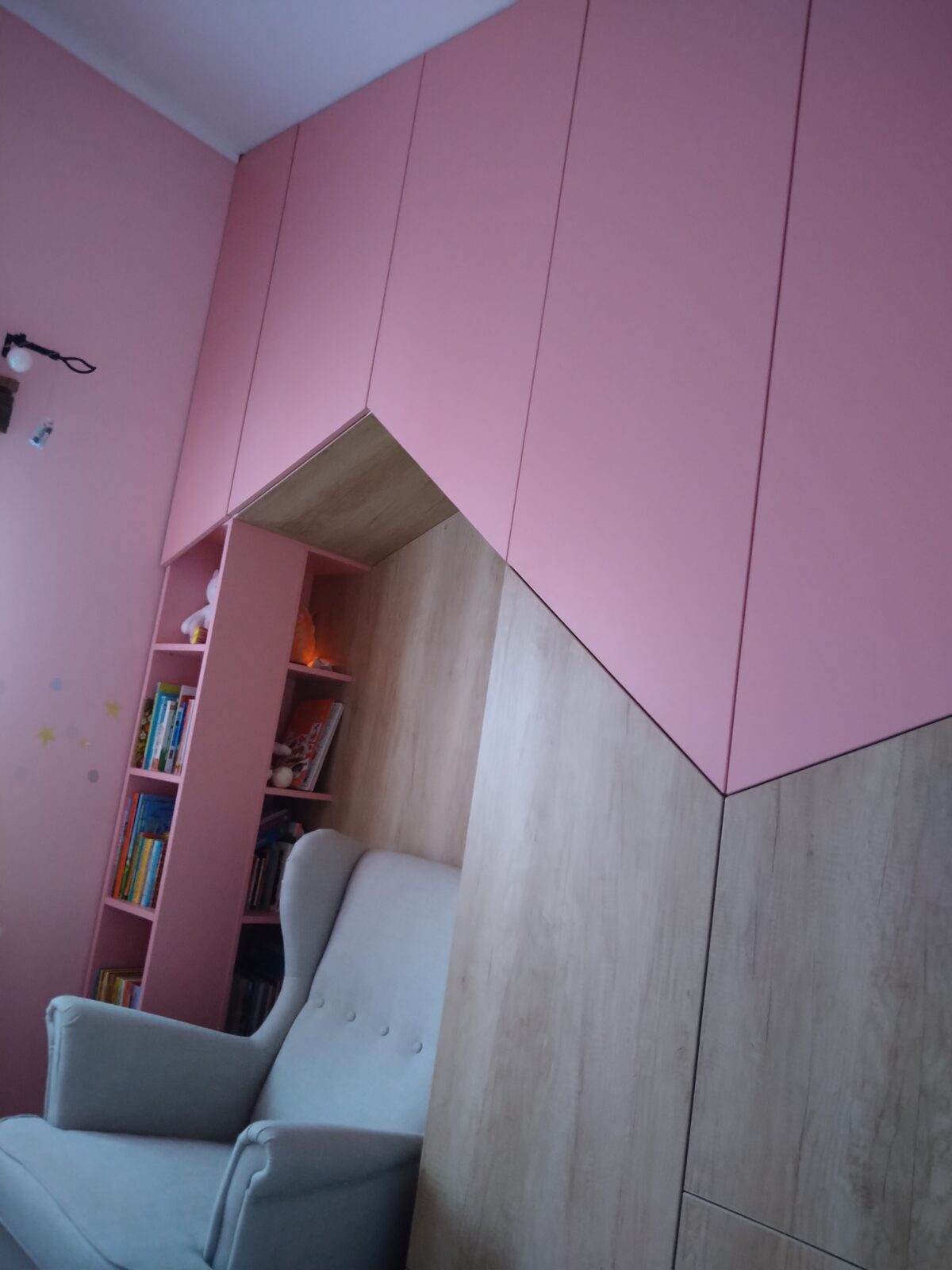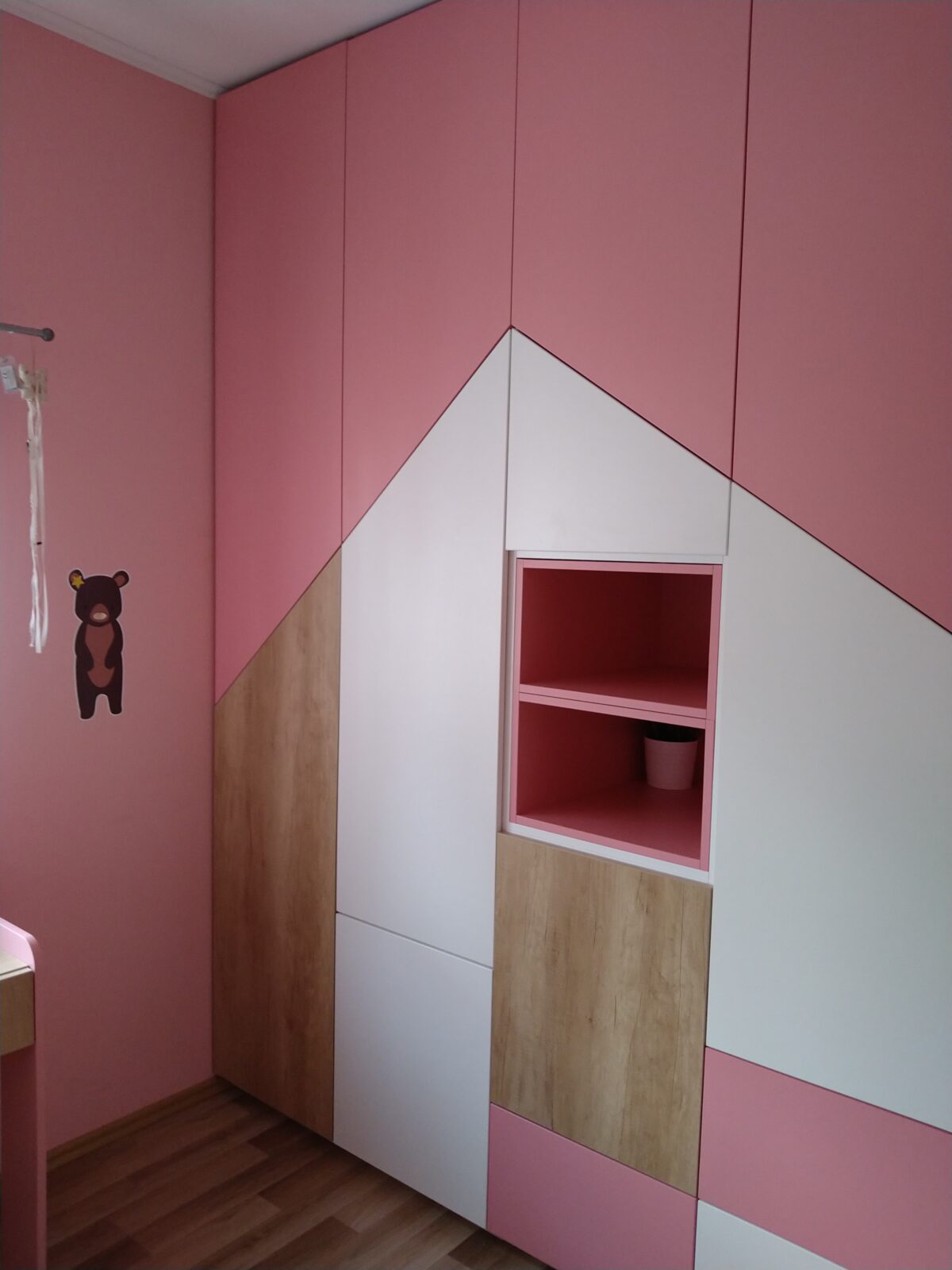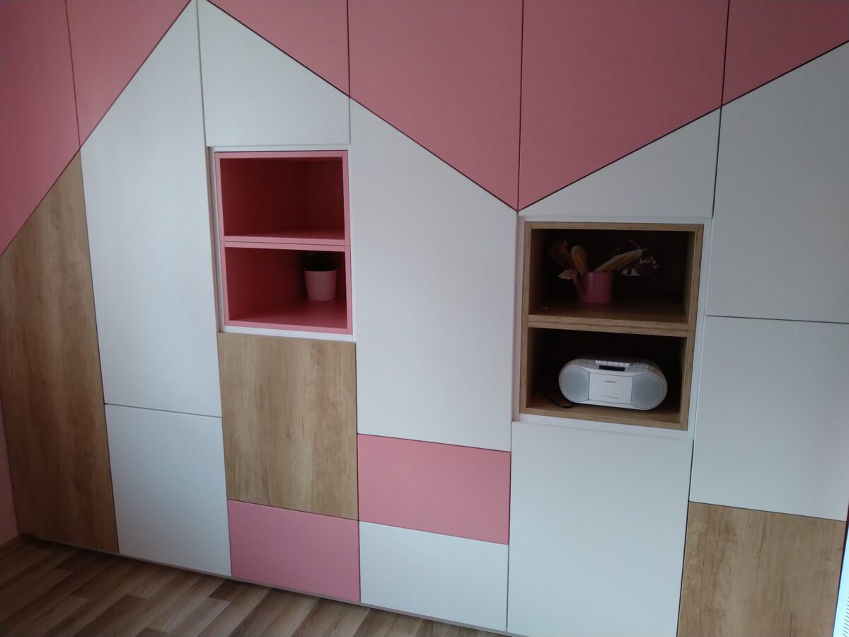 Egy gyerkőc szobájának komplett bebútorozásával bíztak meg. Mivel egy nagyon kreatív ksilányról van szó, így a szoba sem lehetett hétköznapi! Ezért a formákat és a színeket is kreatívan használtuk fel ennél a projektnél. A végeredmény önmagáért beszél, imádta a gyerkőc az elkészült szobát!