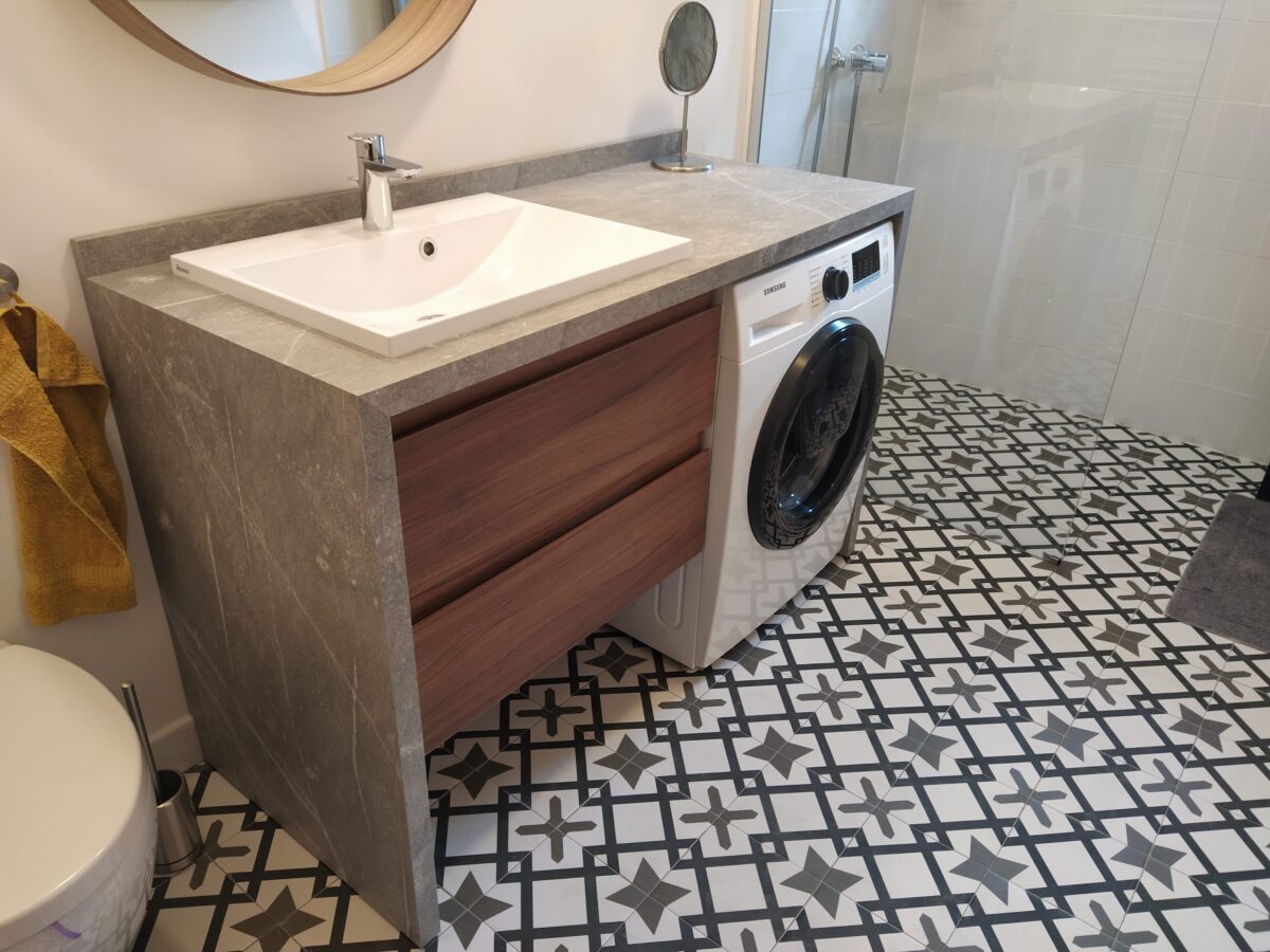 Modern fürdőszoba bútor – A látványterv és az elkészült kisbútor
