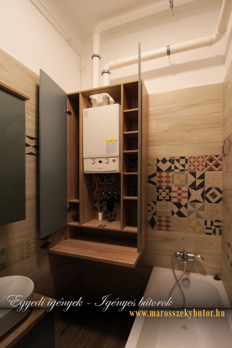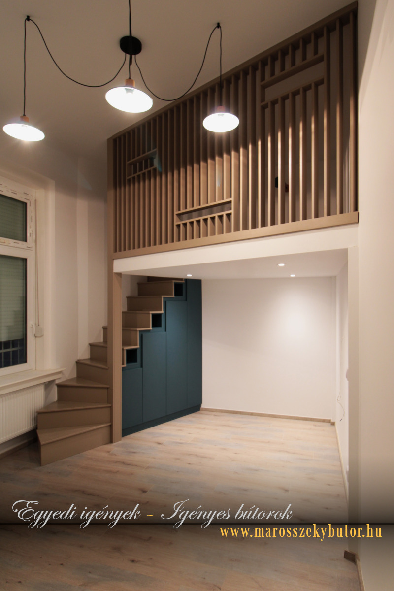 Kompletten kellet bebútorozni egy lakást. Egy galériát is építeni kellett, ami meglehetősen jó szakmai kihívás volt. Ezen kívül el kellett rejteni a fürdőben a gépészetet, ami némi kreatív tervezést vont magával. Így viszont nem csak a bojlert és a hozzá tartozó szerelvényeket sikerült eltüntetni, hanem némi tárolóhelyet is sikerült létrehozni.